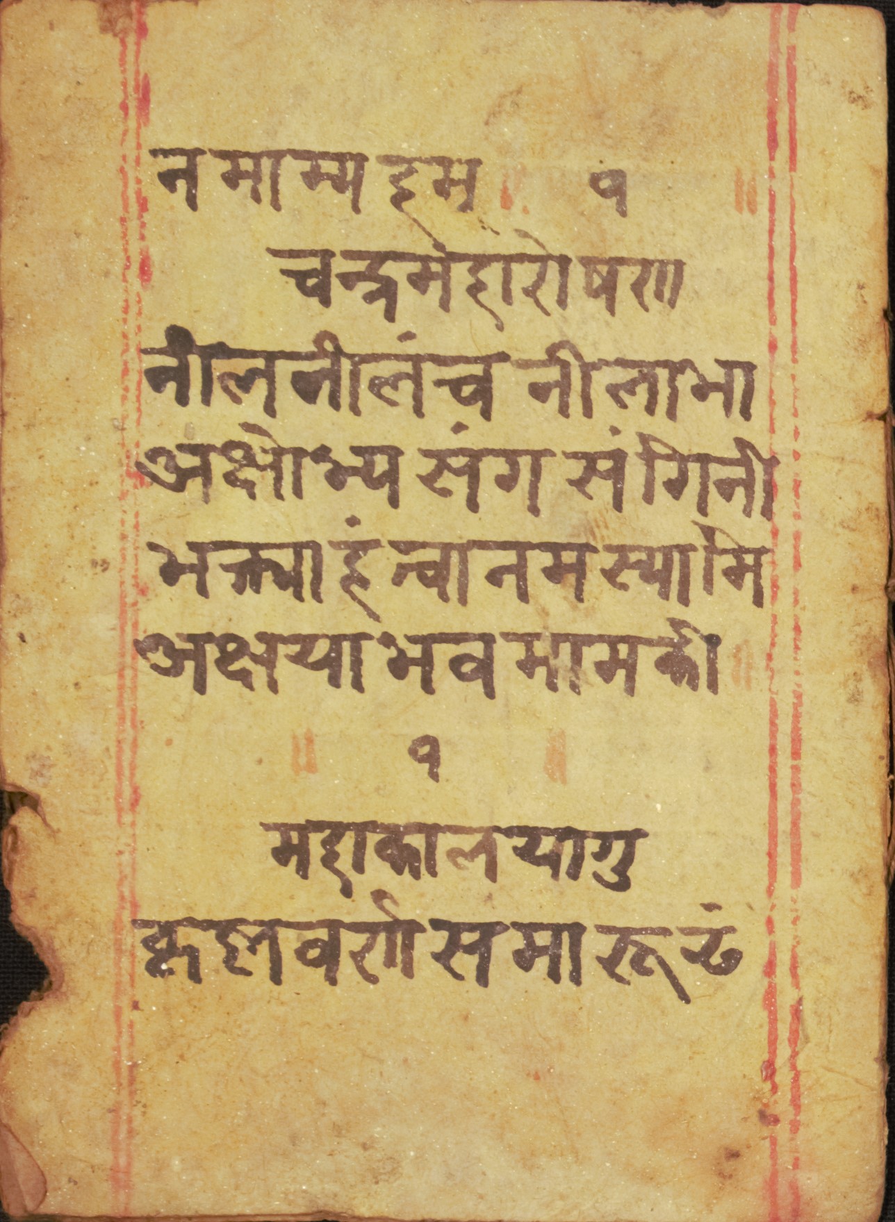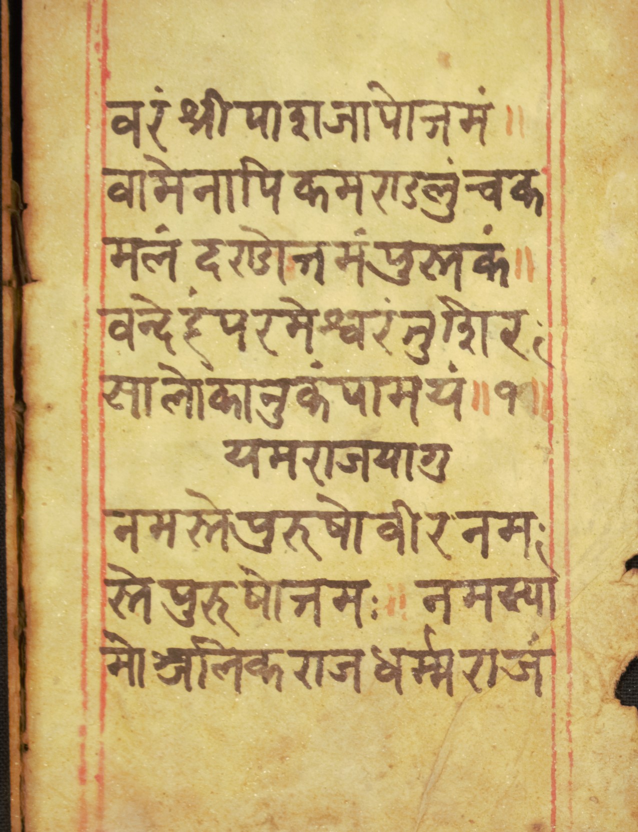 Stotra saṁgraha DSC01561DSC01562DSC01563DSC01564DSC01565DSC01566DSC01567DSC01568DSC01569DSC01570DSC01571DSC01572DSC01573DSC01574DSC01575DSC01576 Information about this Document Topic: StotraCollection: Kiran ShakyaLanguage: Sanskrit/Nepal BhasaScript: DevanagariMaterial: Yellow PaperSupport: ManuscriptCreation Date: Null Dimensions 1 (i.e. Length, etc. in cm): 8cmsDimensions 2 (i.e. Height, etc. in cm): 11.5cmsNumber of folios: 8Lines per leaf/folio: 9rKTs number (if applicable): N/A