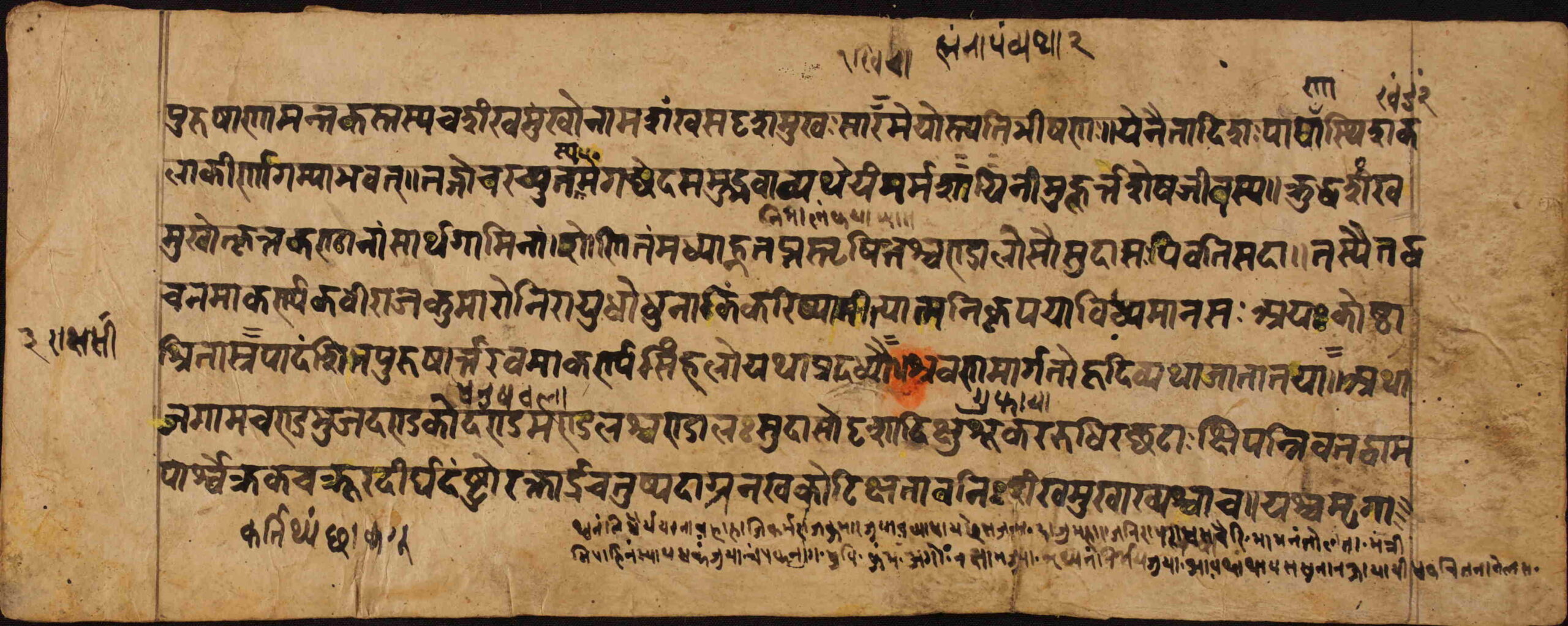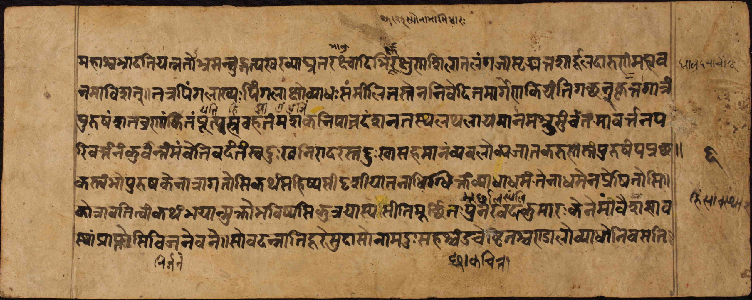 Unidentified I1NPL300001I1NPL300002I1NPL300003I1NPL300004I1NPL300005I1NPL300006 Information about this Document Collection: Yagya Ratna ShakyaLanguage: SanskritScript: PracalitaMaterial: Yellow PaperSupport: ManuscriptCreation Date: NS 1101 Dimensions 1 (i.e. Length, etc. in cm): 24.5cmsDimensions 2 (i.e. Height, etc. in cm): 7.9cmsNumber of folios: 16Lines per leaf/folio: 6rKTs number (if applicable): N/A