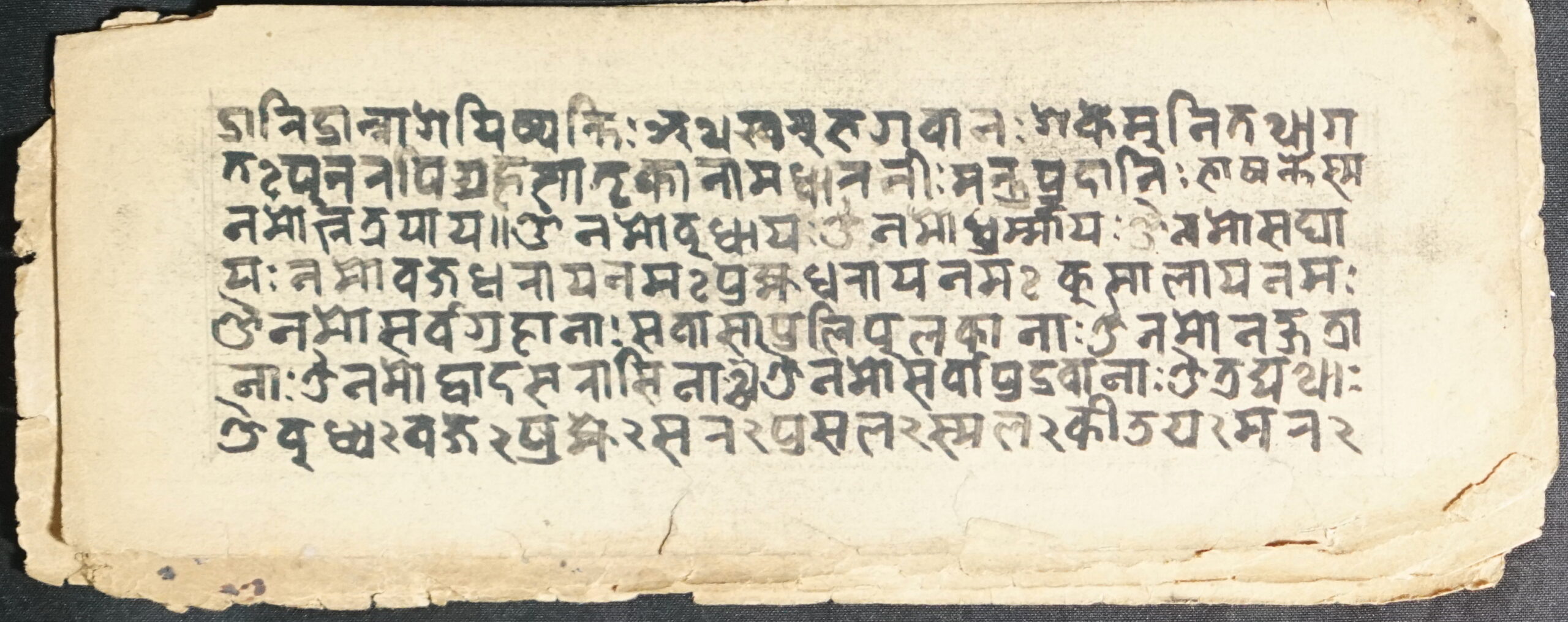Dhāraṇī Japa (100) DSC00021DSC00022DSC00023DSC00024DSC00025DSC00026DSC00027DSC00028DSC00029DSC00030DSC00031DSC00032 Information about this Document Topic: Dhāraṇī Japa (100)Subject: DhāraṇīCollection: Raju ShakyaLanguage: SanskritScript: PracalitaMaterial: Yellow PaperSupport: ManuscriptCreation Date: Null Dimensions 1 (i.e. Length, etc. in cm): 17.7 cmsDimensions 2 (i.e. Height, etc. in cm): 6.9 cmsNumber of folios: 6Lines per leaf/folio: 7Scanner: Sumedh/Anjana