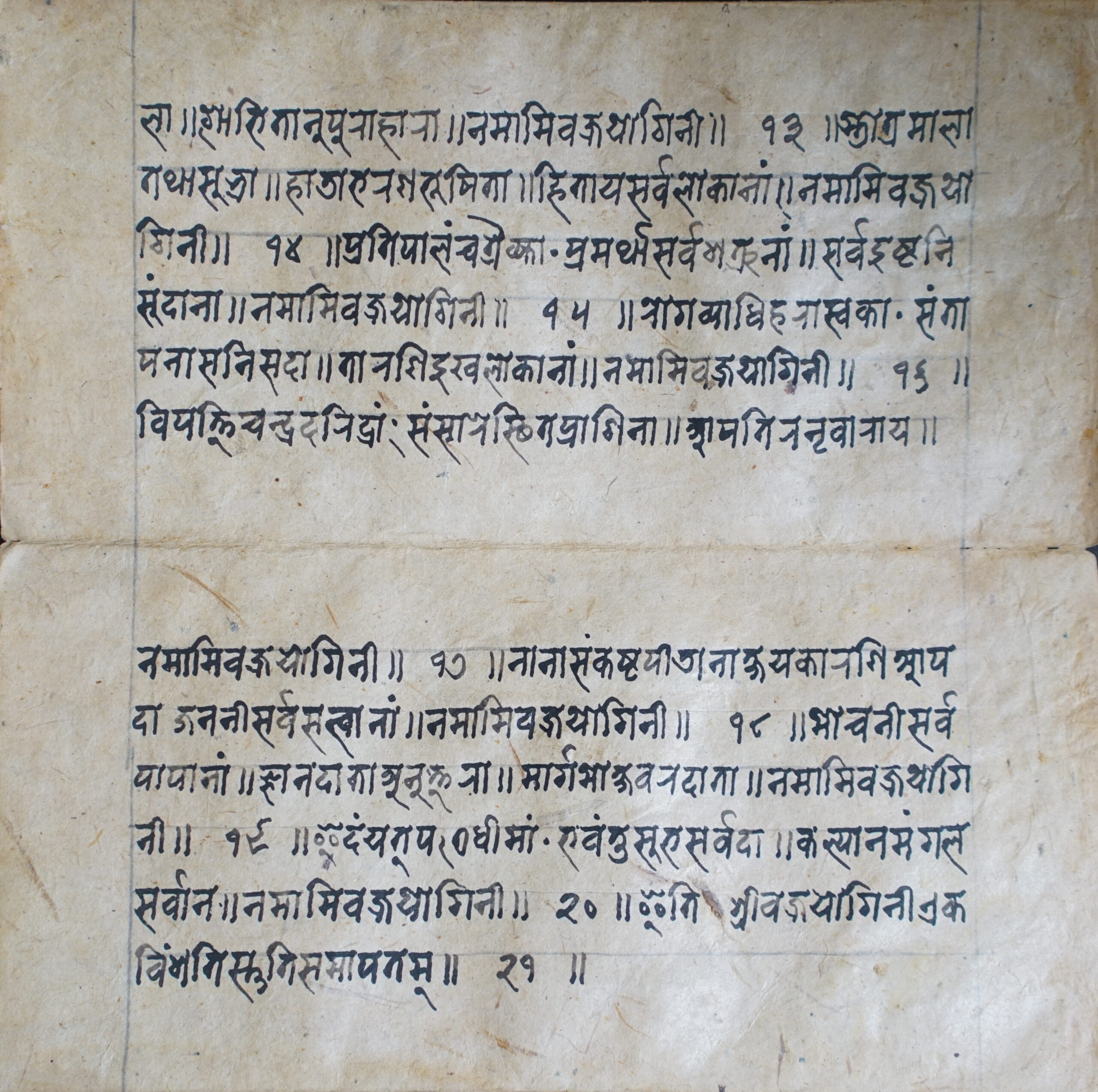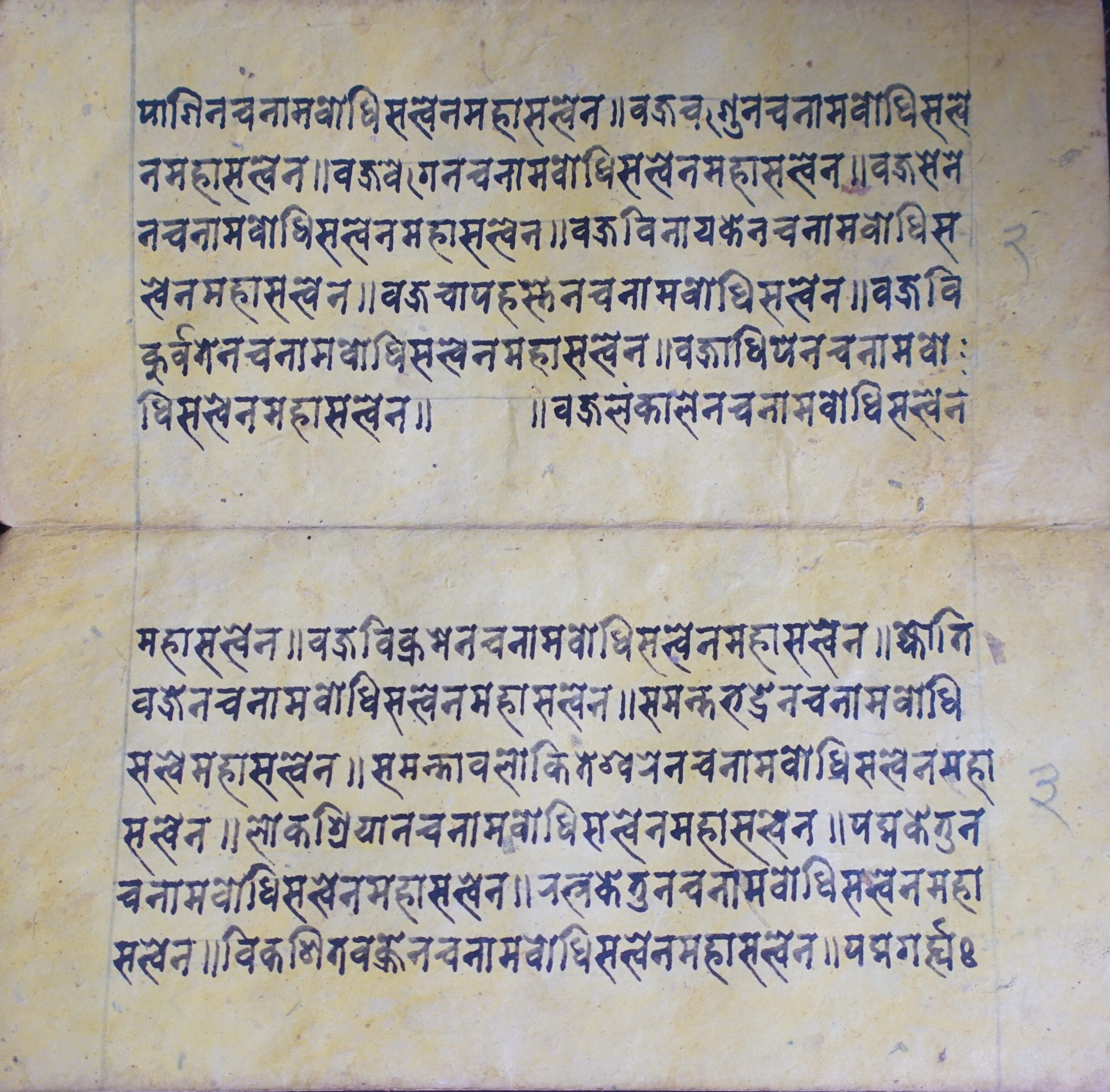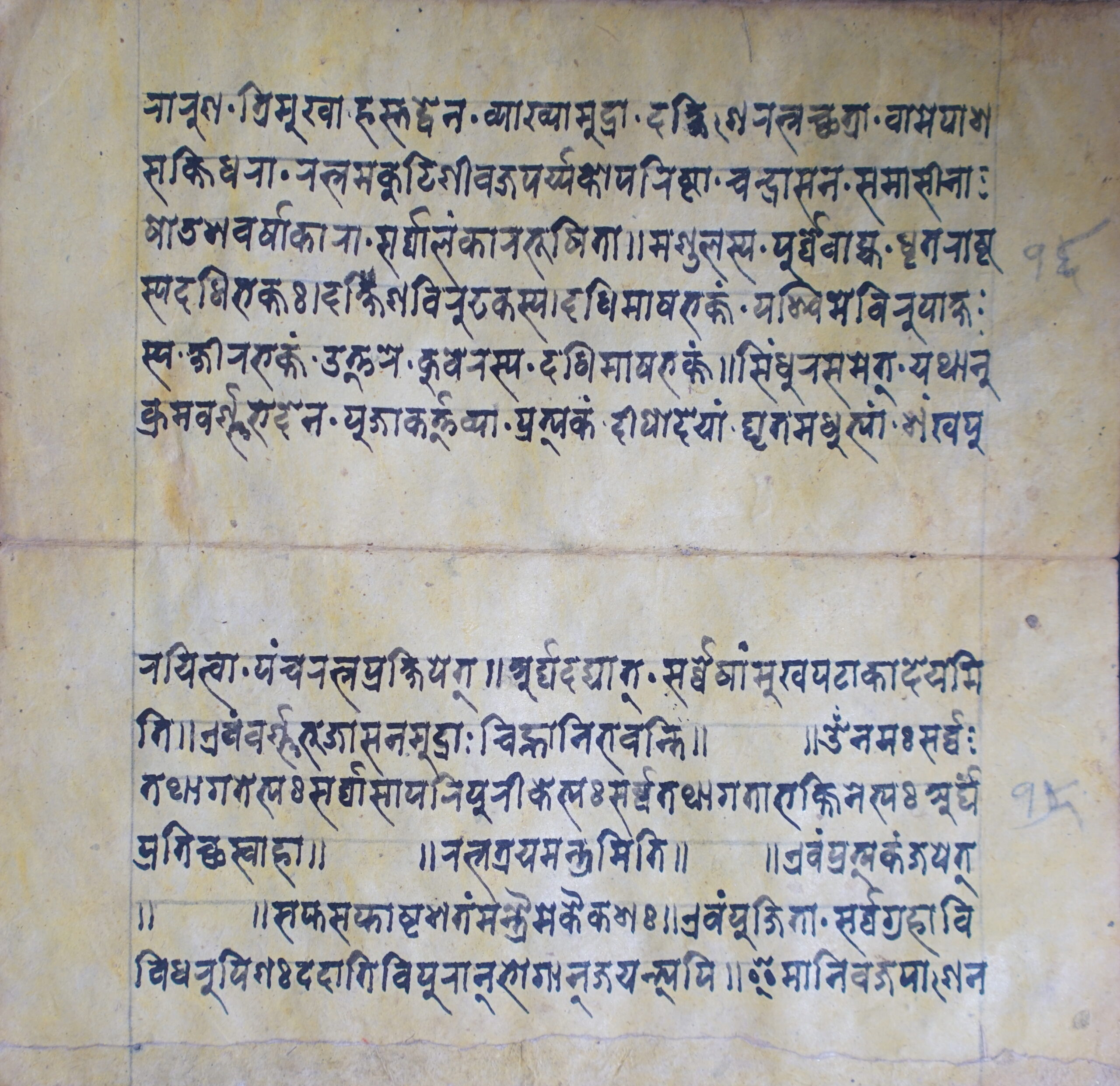 Pratyaṅgirā DSC00081DSC00082DSC00083DSC00084DSC00085DSC00086DSC00087DSC00088DSC00089DSC00090DSC00091DSC00092DSC00093DSC00094DSC00095DSC00096DSC00097DSC00098DSC00099DSC00100DSC00101DSC00102DSC00103DSC00104DSC00105DSC00106DSC00107DSC00108DSC00109DSC00110DSC00111 Information about this Document Topic: Pratyaṅgirā Subject:Collection: Raju ShakyaLanguage: SanskritScript: PracalitaMaterial: Yellow PaperSupport: ManuscriptCreation Date: Null Dimensions 1 (i.e. Length, etc. in cm): 19.5 cmsDimensions 2 (i.e. Height, etc. in cm): 9.7 cmsNumber of folios: 15Lines per leaf/folio: 6Scanner: Sumedh/Anjana