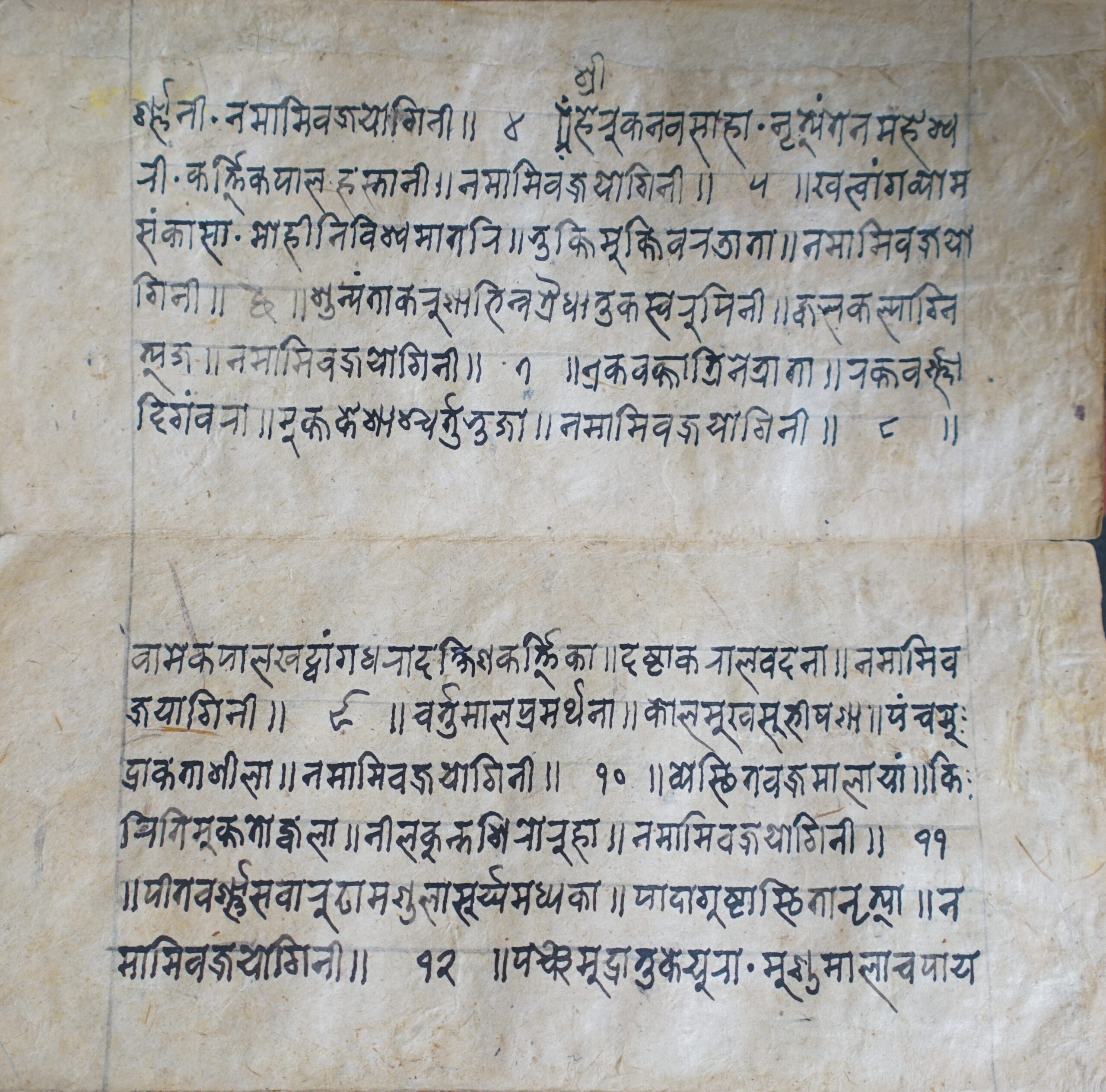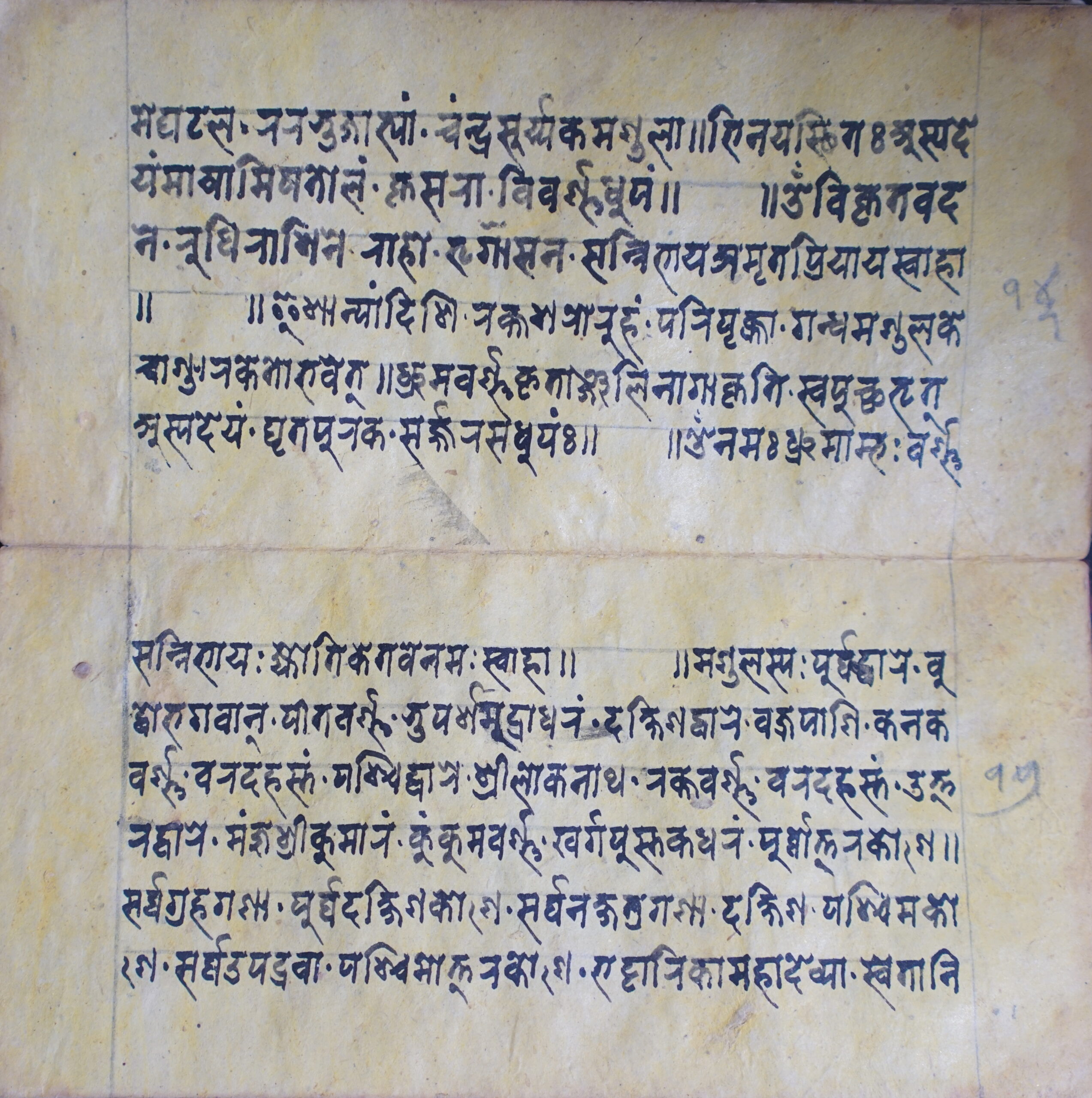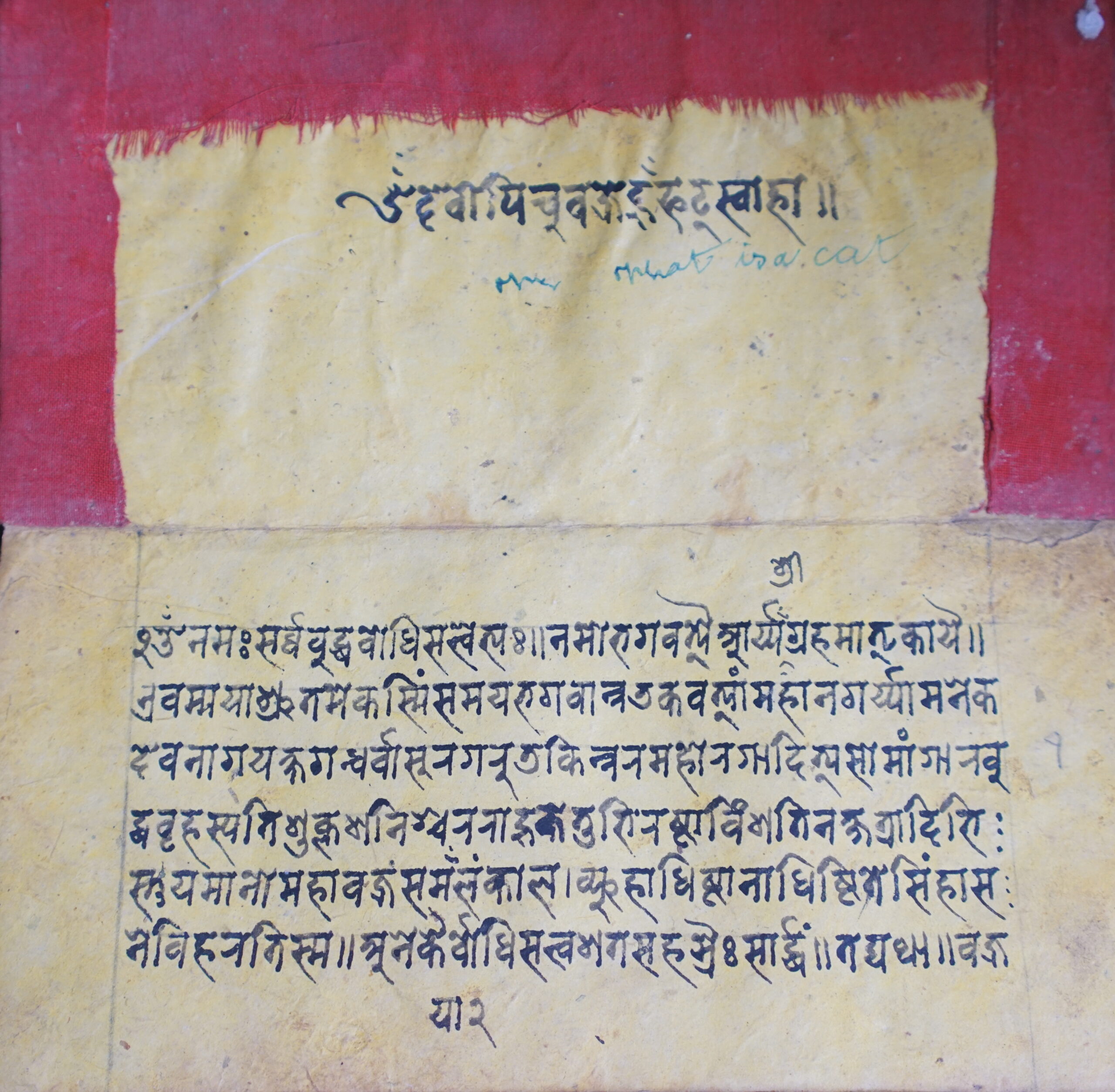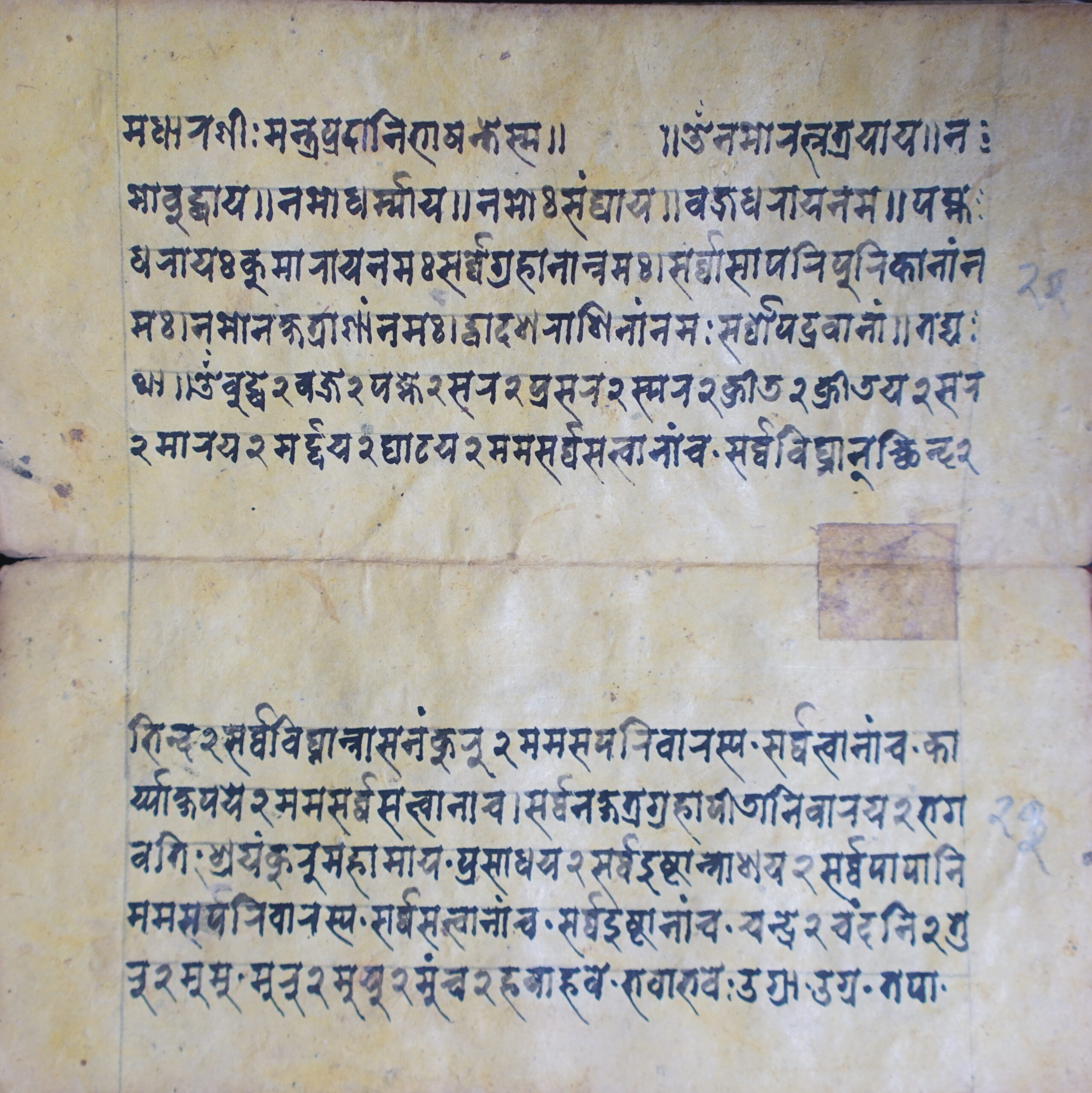 Pratyaṅgirā DSC00081DSC00082DSC00083DSC00084DSC00085DSC00086DSC00087DSC00088DSC00089DSC00090DSC00091DSC00092DSC00093DSC00094DSC00095DSC00096DSC00097DSC00098DSC00099DSC00100DSC00101DSC00102DSC00103DSC00104DSC00105DSC00106DSC00107DSC00108DSC00109DSC00110DSC00111 Information about this Document Topic: Pratyaṅgirā Subject:Collection: Raju ShakyaLanguage: SanskritScript: PracalitaMaterial: Yellow PaperSupport: ManuscriptCreation Date: Null Dimensions 1 (i.e. Length, etc. in cm): 19.5 cmsDimensions 2 (i.e. Height, etc. in cm): 9.7 cmsNumber of folios: 15Lines per leaf/folio: 6Scanner: Sumedh/Anjana