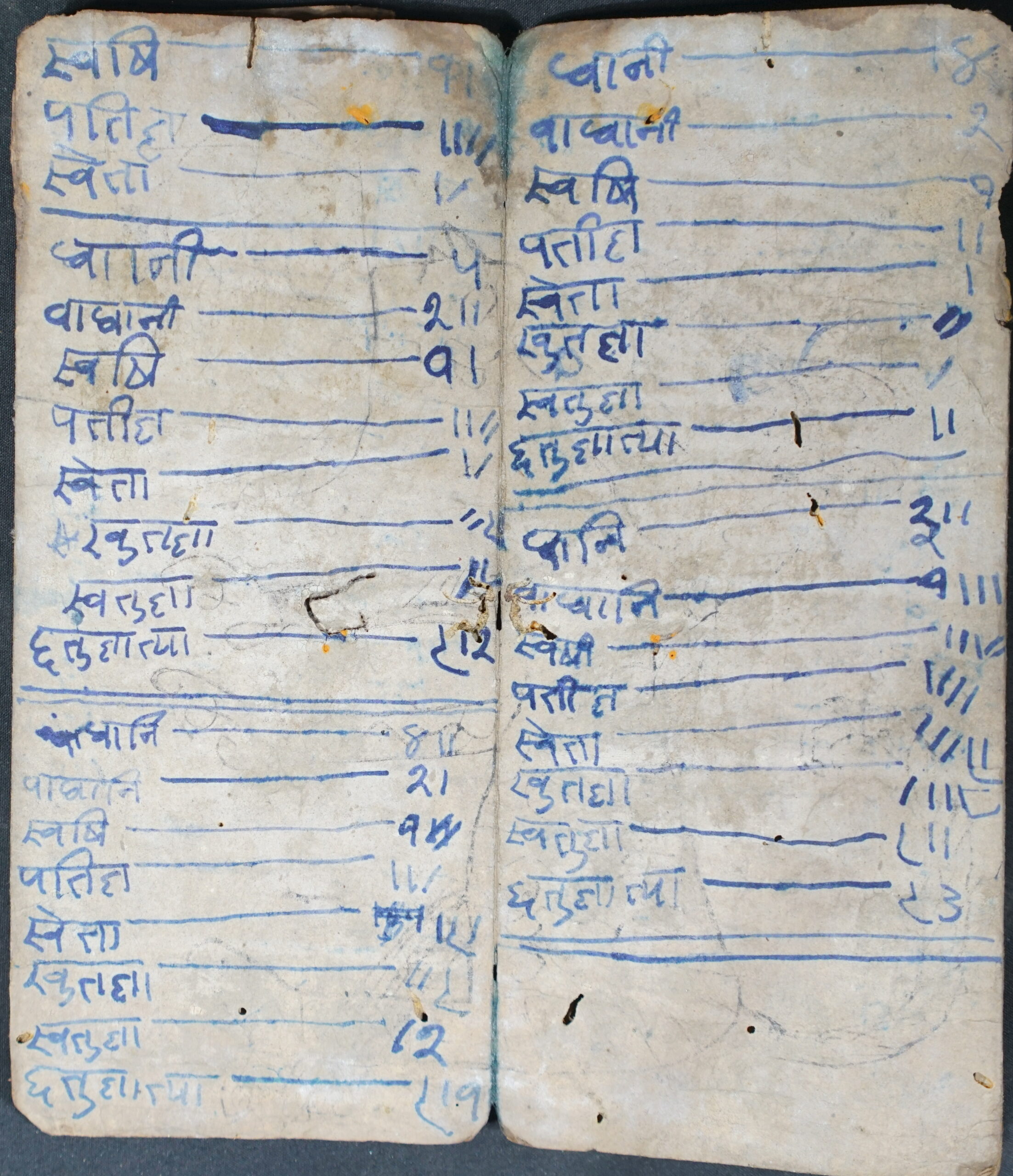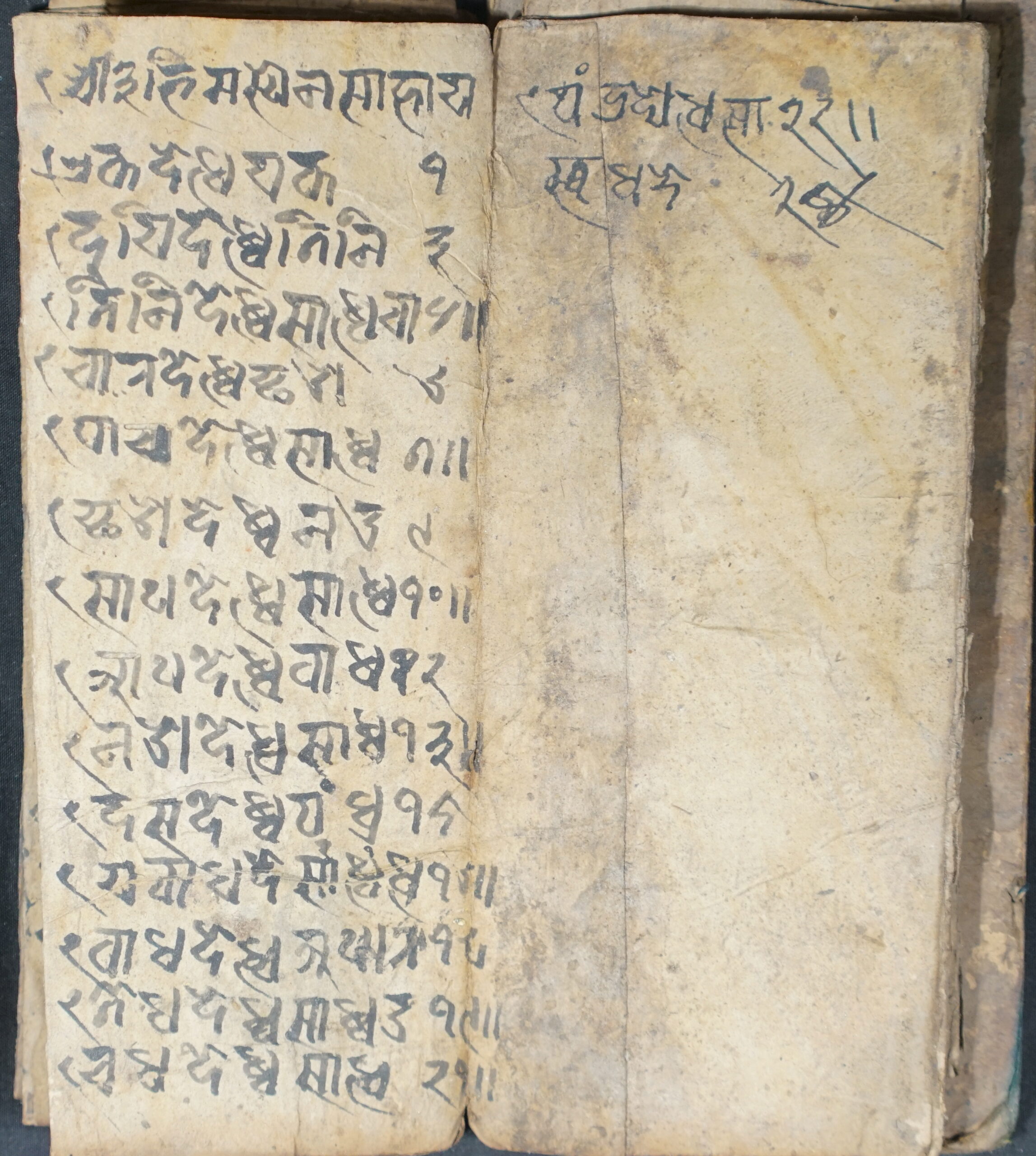 Unknown DSC00001DSC00002DSC00003DSC00004DSC00005DSC00006DSC00007DSC00008DSC00009DSC00010DSC00011DSC00012DSC00013DSC00014DSC00015DSC00016DSC00017DSC00018DSC00019DSC00020DSC00021DSC00022DSC00023DSC00024DSC00025DSC00026 Information about this Document Topic: UnknownSubject: MathematicsCollection: Kiran ShakyaLanguage: SanskritScript: Pracalita NepaliMaterial: Yellow PaperSupport: ManuscriptCreation Date: Null Dimensions 1 (i.e. Length, etc. in cm): 19 cmsDimensions 2 (i.e. Height, etc. in cm): 8.3 cmsNumber of folios: 23Lines per leaf/folio: 5Scanner: Sumedh/Anjana