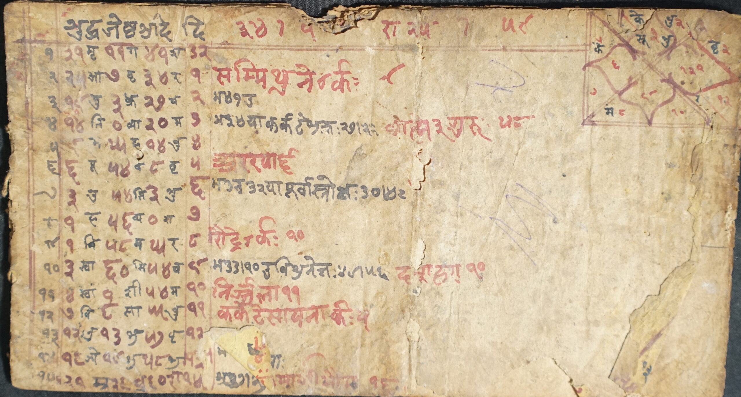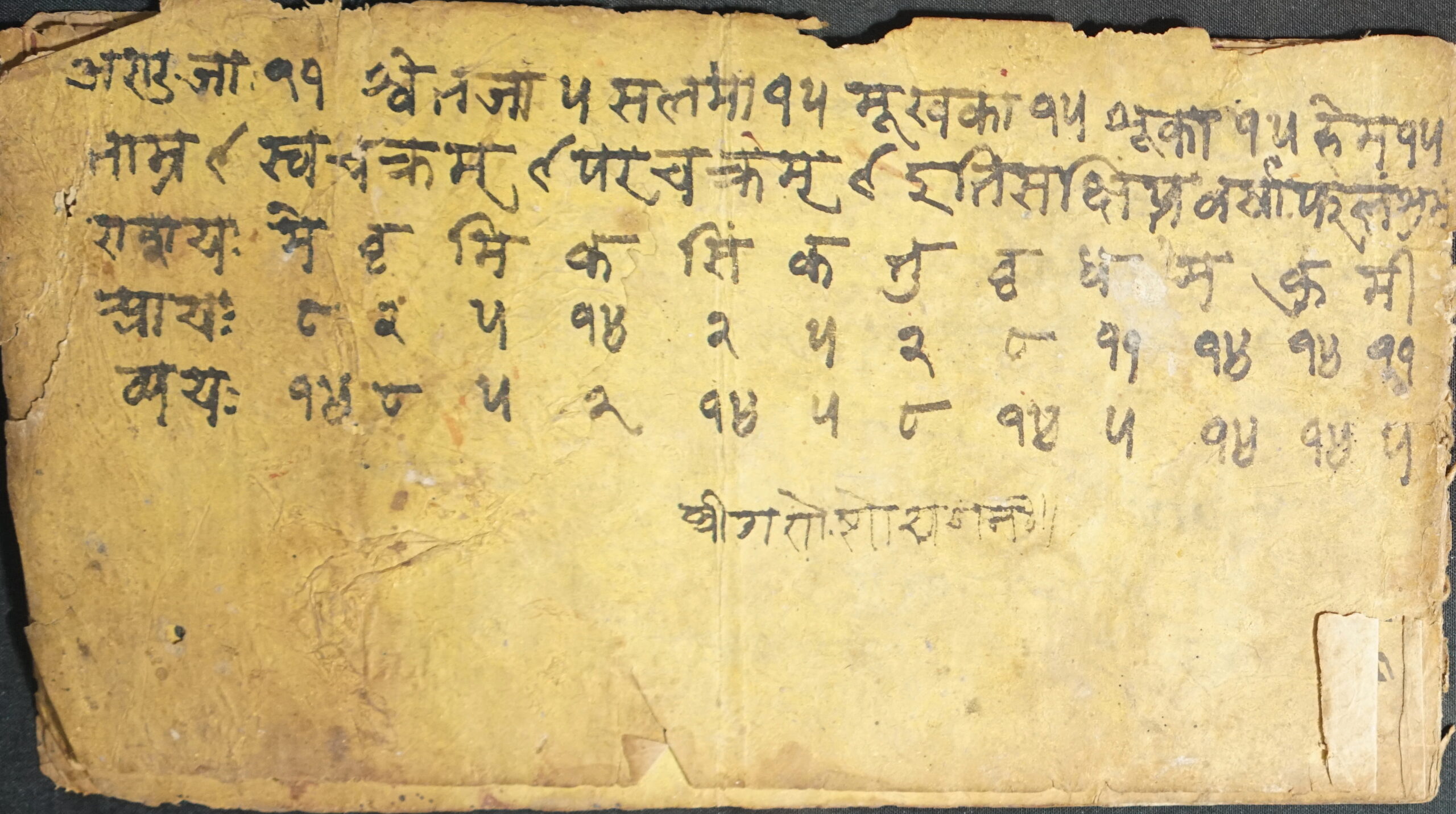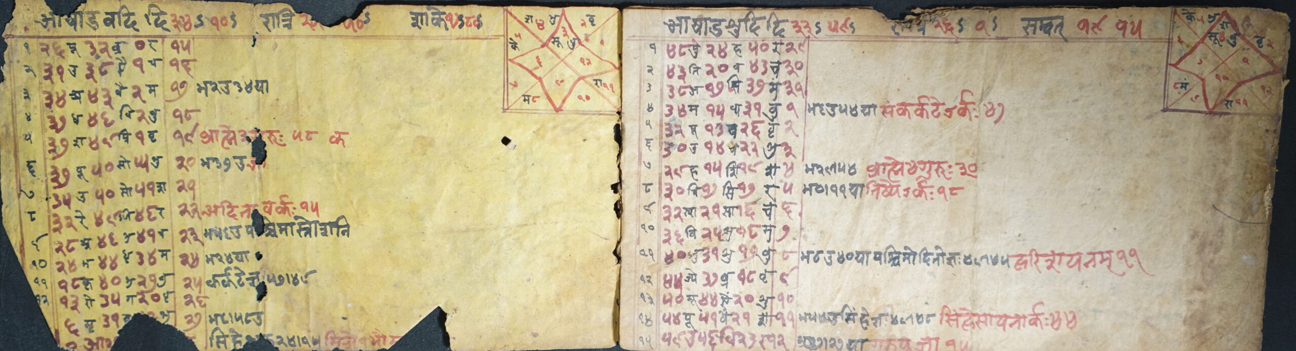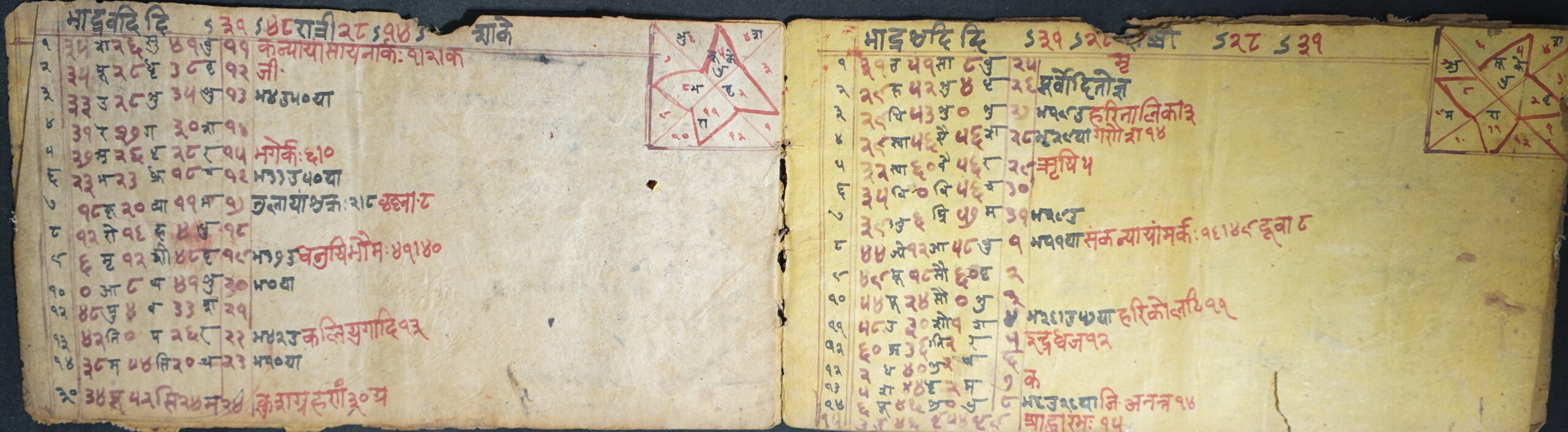 Calendar DSC00074DSC00075DSC00076DSC00077DSC00078DSC00079DSC00080DSC00081DSC00082DSC00083DSC00084 Information about this Document Topic: CalendarSubject: CalendarCollection: Kiran ShakyaLanguage: Sanskrit, Nepal BhasaScript: DevanagariMaterial: Yellow PaperSupport: ManuscriptCreation Date: Null Dimensions 1 (i.e. Length, etc. in cm): 10.7 cmsDimensions 2 (i.e. Height, etc. in cm): 19.7 cmsNumber of folios: 9Lines per leaf/folio: 8-15Scanner: Sumedh/Anjana