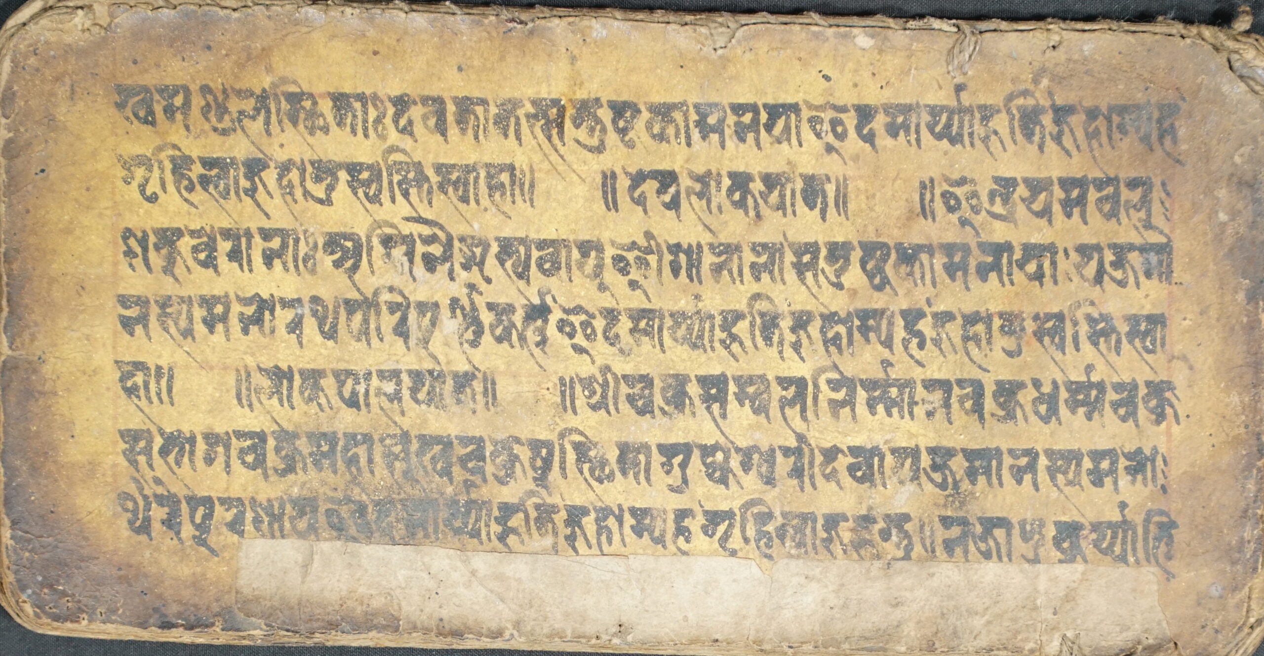 Unknown Ritual Text DSC00271DSC00272DSC00273DSC00274DSC00275DSC00276 Information about this Document Topic: Unknown Ritual TextSubject: Pujā VidhiCollection: Raju ShakyaLanguage: Sanskrit, Nepal BhasaScript: Pracalita NepaliMaterial: Yellow PaperSupport: ManuscriptCreation Date: Null Dimensions 1 (i.e. Length, etc. in cm): 19.3 cmsDimensions 2 (i.e. Height, etc. in cm): 9.6 cmsNumber of folios: 5Lines per leaf/folio: 7Scanner: Sumedh/Anjana