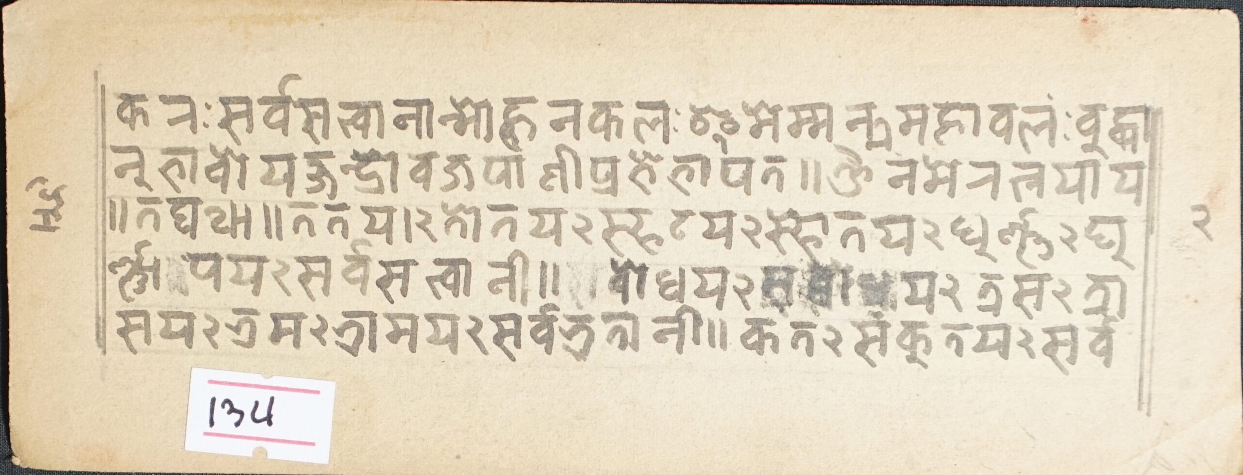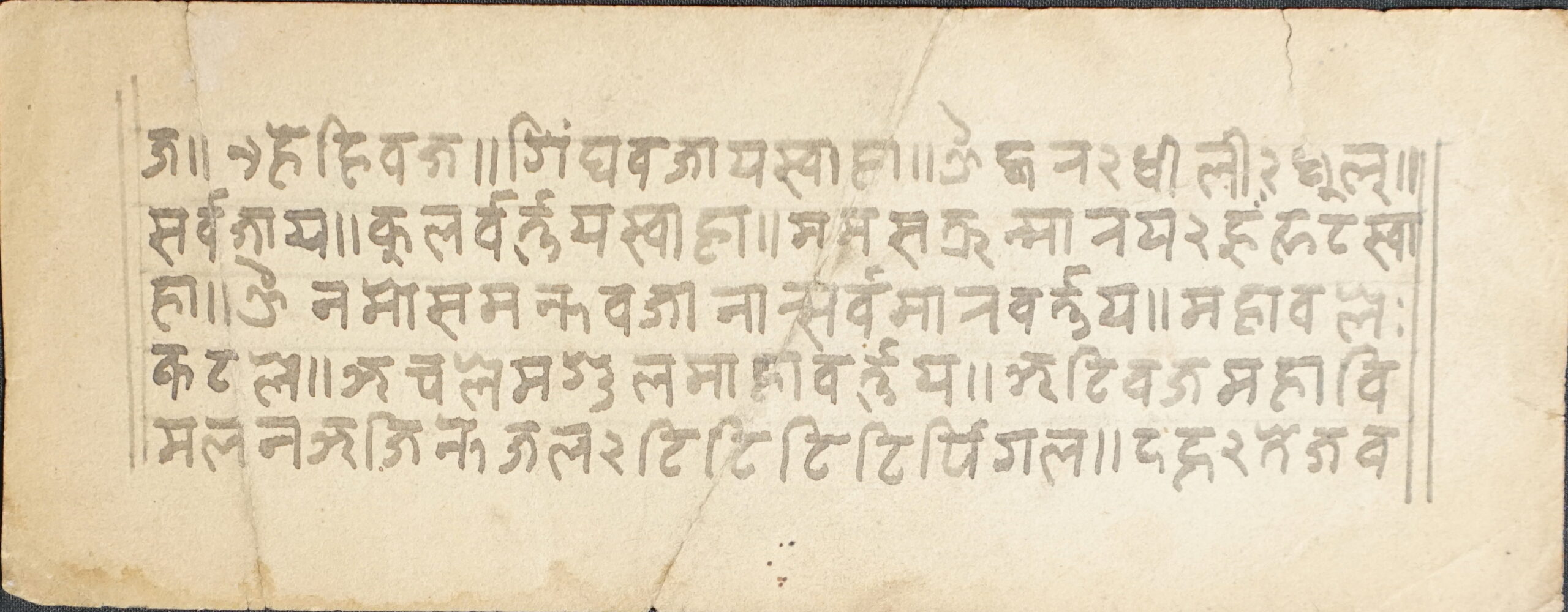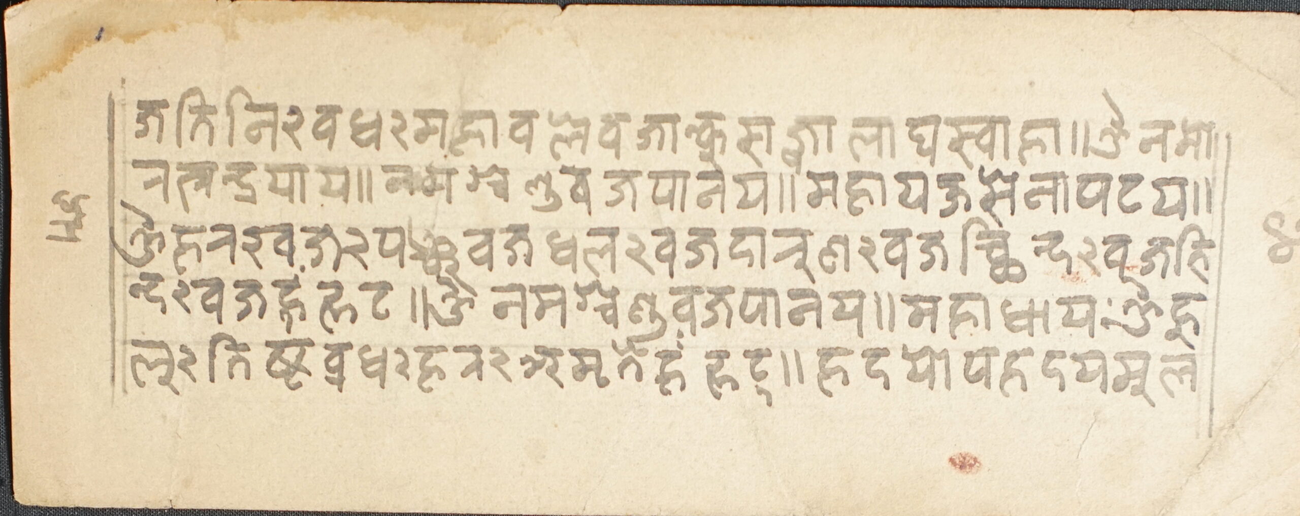 Title Not Known DSC00007DSC00008DSC00009DSC00010DSC00011DSC00012 Information about this Document Topic: Title Not KnownSubject: SūtraCollection: Santasri Ratna BajracharyaLanguage: SanskritScript: Pracalita NepaliMaterial: Yellow PaperSupport: ManuscriptCreation Date: Null Dimensions 1 (i.e. Length, etc. in cm): 17.1 cmsDimensions 2 (i.e. Height, etc. in cm): 6.5 cmsNumber of folios: 3 (incomplete)Lines per leaf/folio: 5Scanner: Sumedh/Anjana