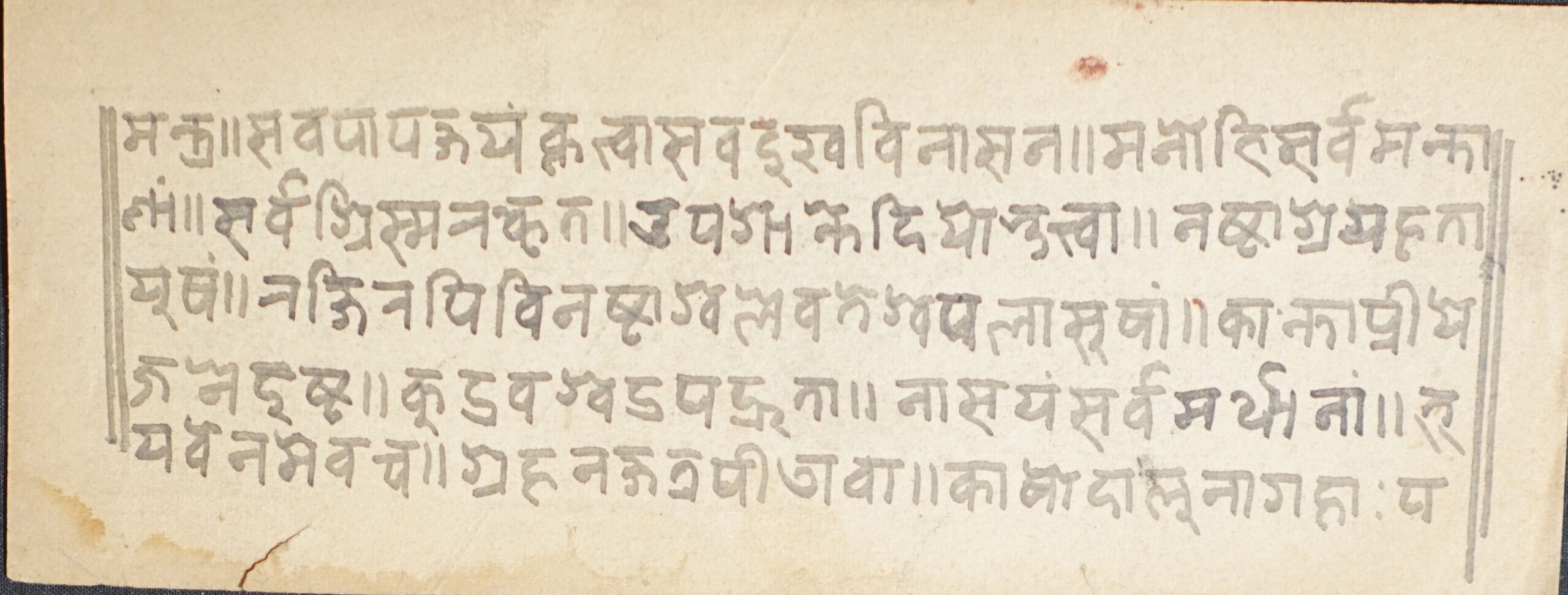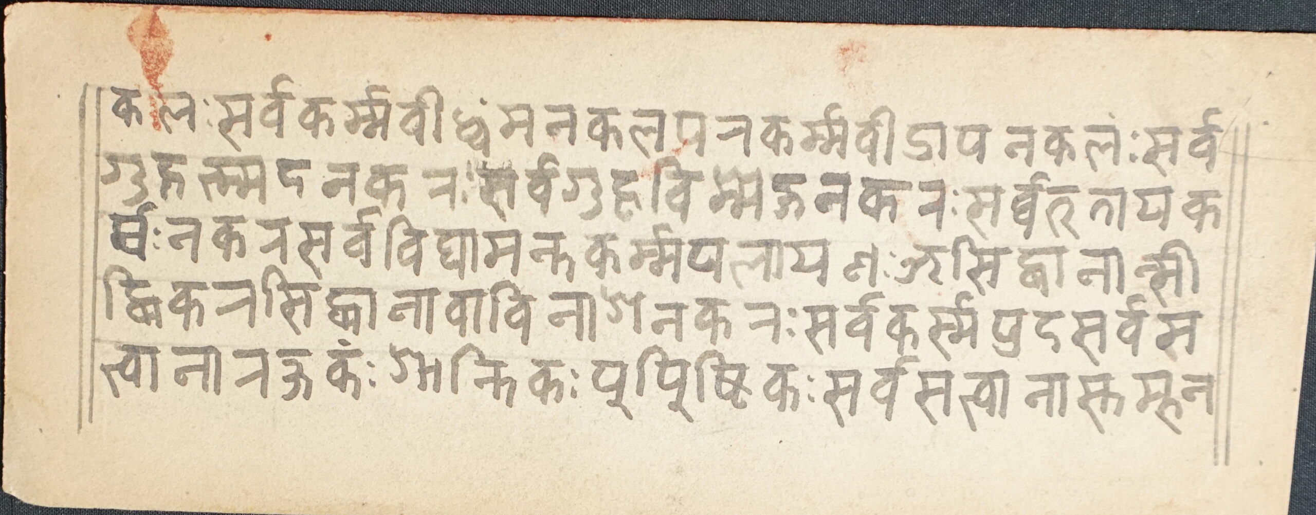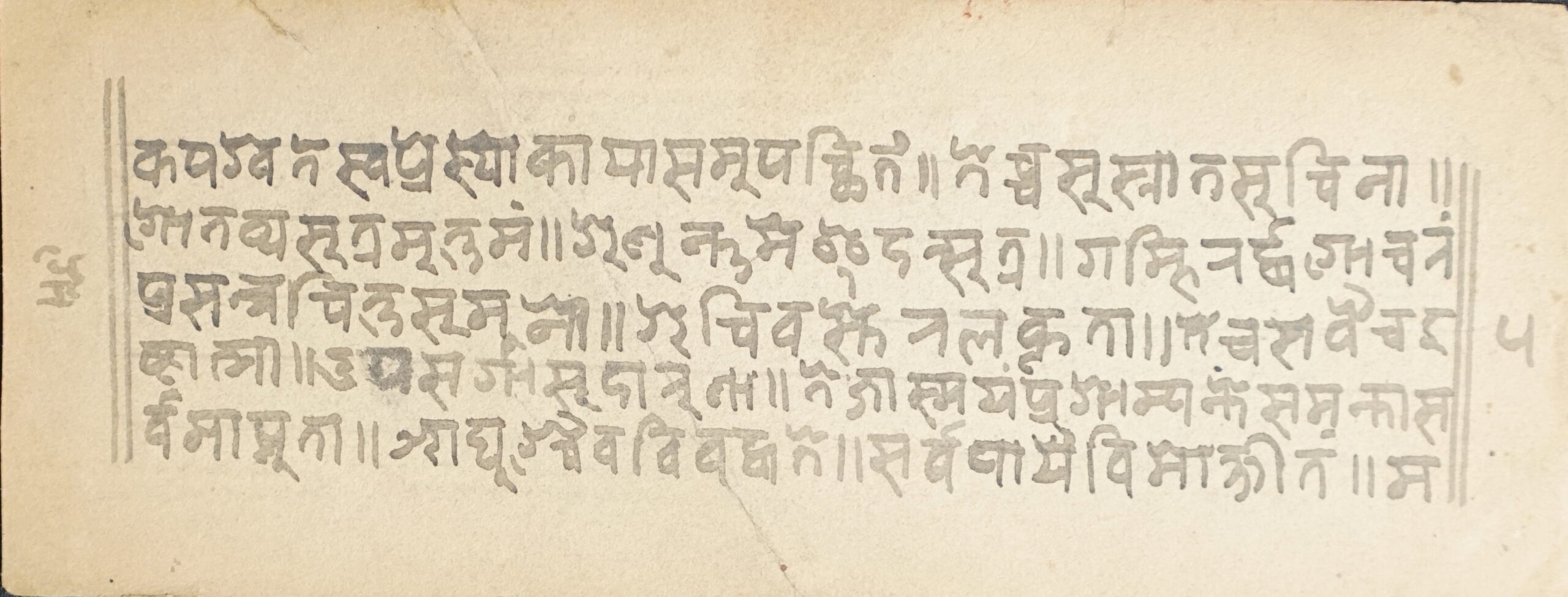 Title Not Known DSC00007DSC00008DSC00009DSC00010DSC00011DSC00012 Information about this Document Topic: Title Not KnownSubject: SūtraCollection: Santasri Ratna BajracharyaLanguage: SanskritScript: Pracalita NepaliMaterial: Yellow PaperSupport: ManuscriptCreation Date: Null Dimensions 1 (i.e. Length, etc. in cm): 17.1 cmsDimensions 2 (i.e. Height, etc. in cm): 6.5 cmsNumber of folios: 3 (incomplete)Lines per leaf/folio: 5Scanner: Sumedh/Anjana