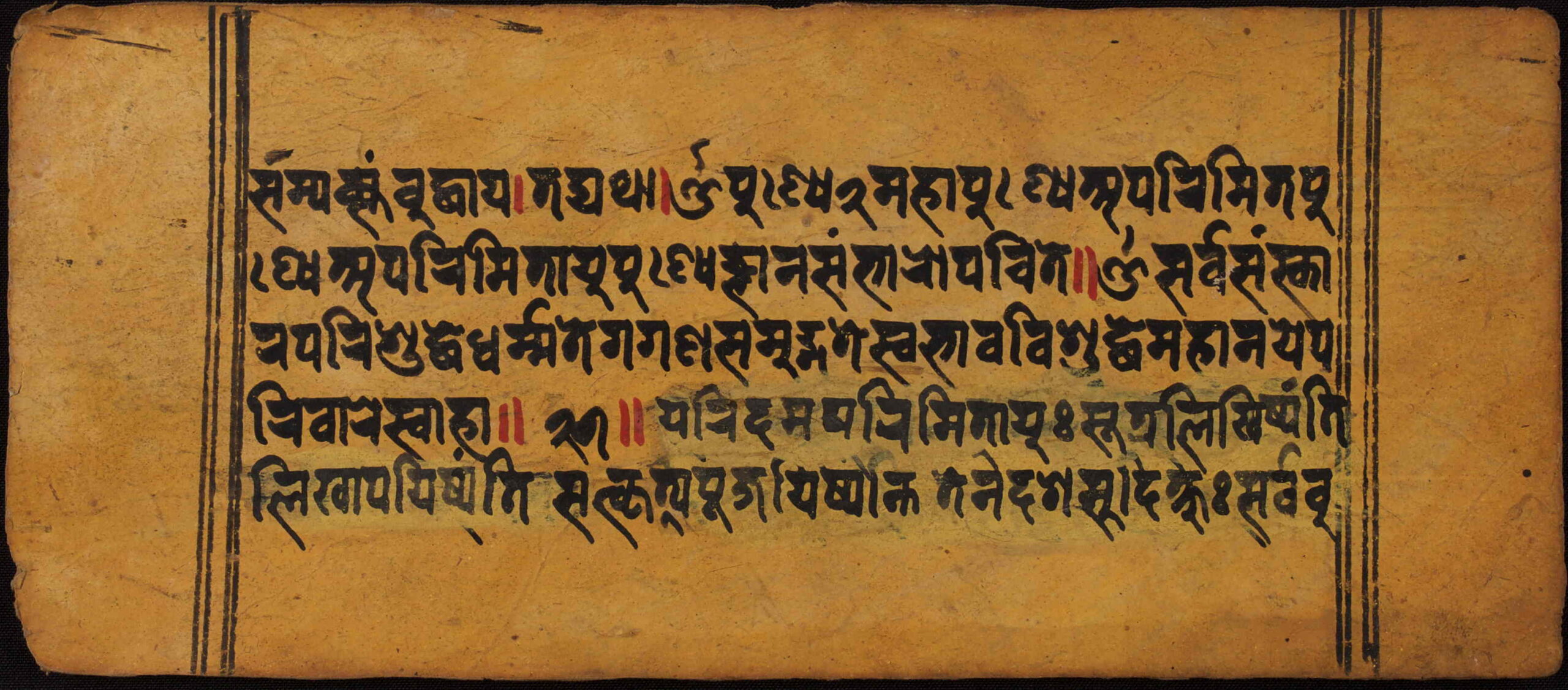 Pañcarakṣā sūtra I1NPL500001I1NPL500002I1NPL500003I1NPL500004 Information about this Document Topic: AvadānaCollection: Yagya Ratna ShakyaLanguage: SanskritScript: PracalitaMaterial: Yellow PaperSupport: ManuscriptCreation Date: Null Dimensions 1 (i.e. Length, etc. in cm): 24cmsDimensions 2 (i.e. Height, etc. in cm): 12cmsNumber of folios: 39Lines per leaf/folio: 13rKTs number (if applicable): N/A