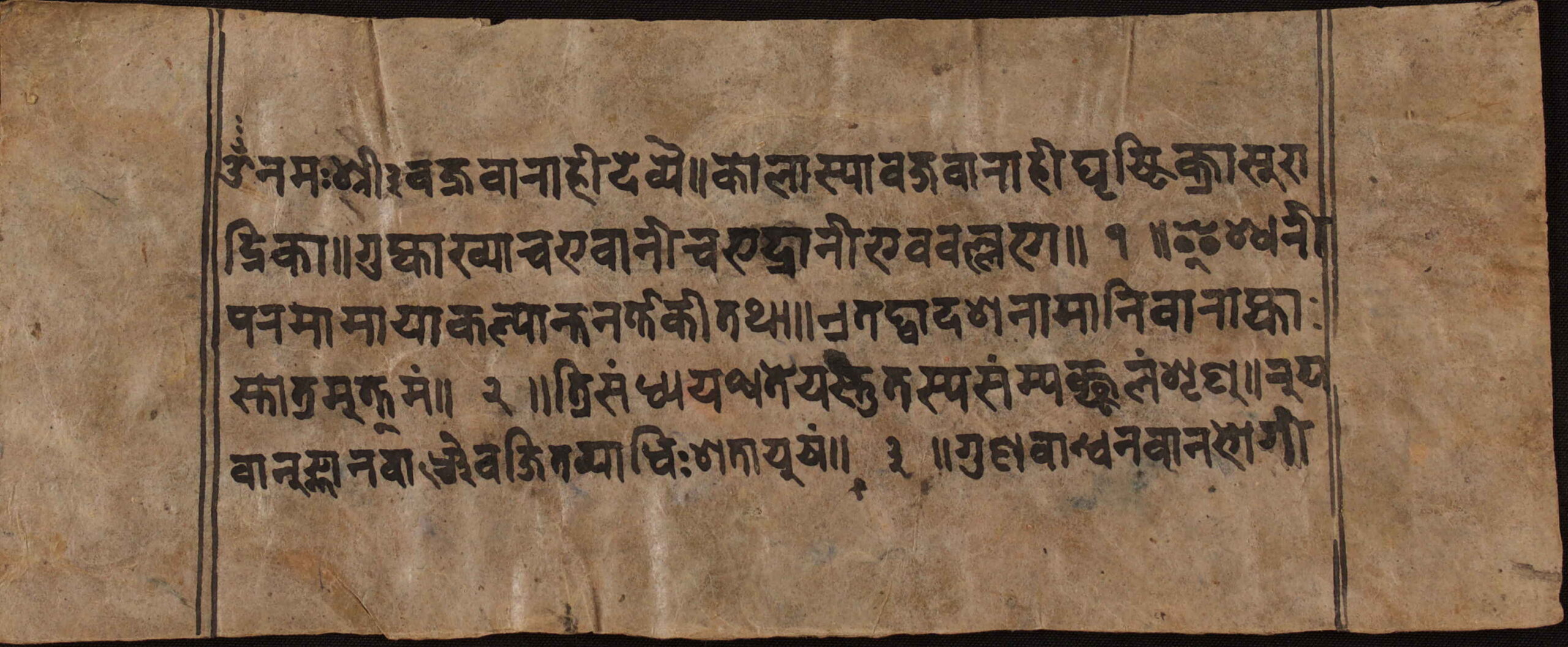 Unidentified I1NPL2800001I1NPL2800002I1NPL2800003I1NPL2800004I1NPL2800005I1NPL2800006I1NPL2800007I1NPL2800008I1NPL2800009 Information about this Document Topic: Pūjāvidhi and StotraCollection: Yagya Ratna ShakyaLanguage: SanskritScript: DevangariMaterial: Yellow PaperSupport: ManuscriptCreation Date: Null Dimensions 1 (i.e. Length, etc. in cm): 18cmsDimensions 2 (i.e. Height, etc. in cm): 6cmsNumber of folios: 5Lines per leaf/folio: 5rKTs number (if applicable): N/A